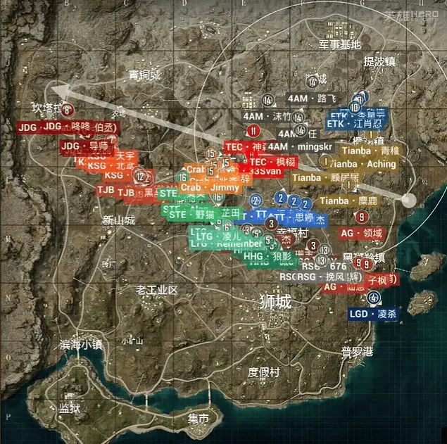 决胜时刻,信号圈缩在战地医院附近,圈内剩余北京JDG战队、青岛HHG战队和南京LTG战队,此时场上3v1v2。HHG战队独狼先被北京JDG战队淘汰出局,随后剩余两队展开对战,最终JDG战队凭借默契配合接连收下LTG战队拿下比赛,恭喜北京JDG和平精英分部获得本场比赛胜利